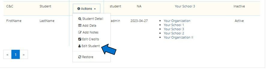 You will be taken to the EDIT STUDENT page.